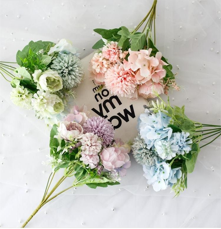 Шелковые искусственные цветочные букеты изготовлены из высококачественного пластика, шелковой ткани и шелка с изысканным мастерством.,розы и т.д., чтобы создать красочную цветочную композицию.